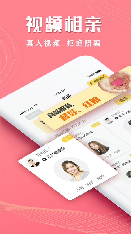 《紅娘視頻相親》是一款主打真人互動的線上視頻相親應用,借助互聯(lián)網的廣泛資源,幫助用戶打破傳統(tǒng)相親的圈子限制。還在為父母安排的相親對象不合心意而煩惱?想結識更契合自己期待的優(yōu)質對象?不妨試試《紅娘視頻相親》——這款真實可靠的相親軟件有專業(yè)月老為你牽線搭橋,會依據你的個性化需求與興趣愛好,精準實現(xiàn)雙方的匹配對接。別猶豫了,快來體驗吧!