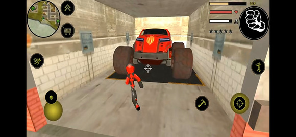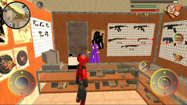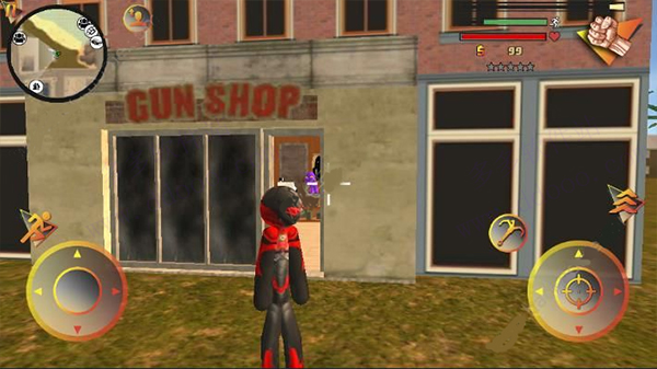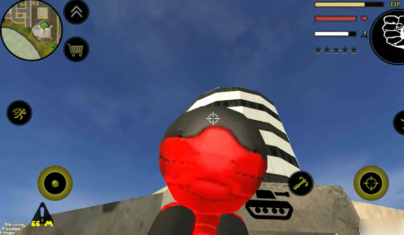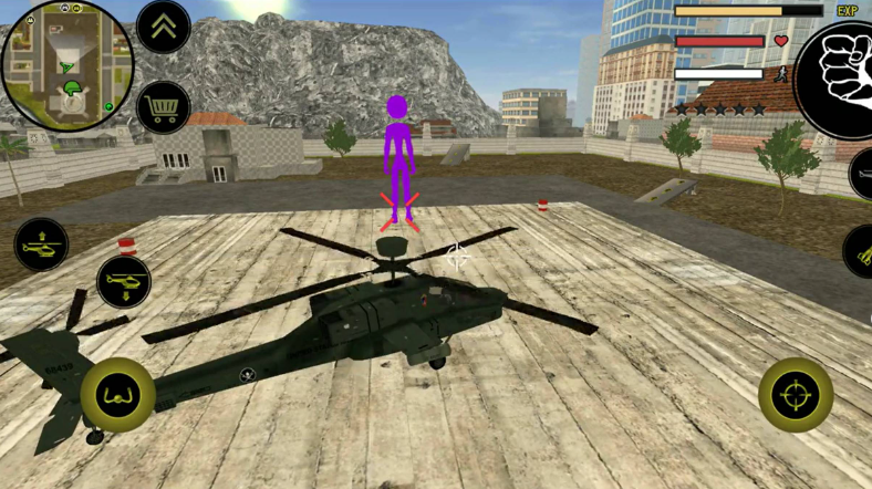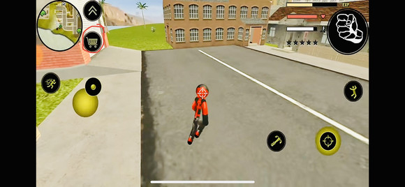 左側控制移動與加速,右側負責繩索操作和攻擊(含跳躍功能),跳躍鍵獨立設置;畫面右上側的武器切換、血量與經驗值均實時刷新,狀態信息一目了然。玩家可自由選擇玩法,與其他幫派成員展開交火——擊殺敵人能獲取經驗,連續擊殺會累積星級,此時警察及周邊角色會重點針對你發起猛烈攻擊。如何在激烈對抗中存活下來,并成功消滅對手,便是你需要完成的核心任務。