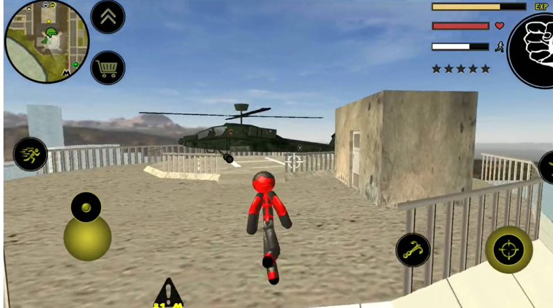當我們抵達樓頂后,會看到一架阿帕奇直升機,我們得駕駛這架直升機前往巨型火柴人所在的地方。
