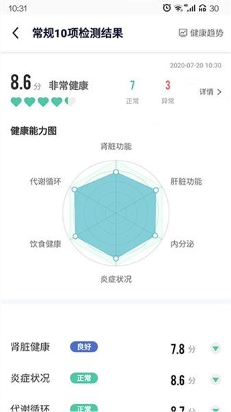 根據你的而檢測結果自動進行數據分析,這樣就能讓你知道自己的各種肝臟、腎臟、炎癥、代謝等數據了;