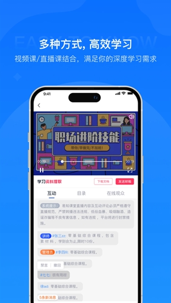 易知課堂軟件是一款全新的軟件,以視頻為核心,采用模式解讀,經過精心設計,該軟件在課堂場景中提供了海量的信息和知識,隨時隨地讓用戶能夠直接獲取所需的內容。用戶可以享受到風趣實際的學習體驗,通過觀看視頻和參與交互測試來提高學習效果。不僅如此,易知課堂軟件還具有社交功能,讓學習者能夠與其他用戶分享PPT等相關資源,共同提升學習效果。