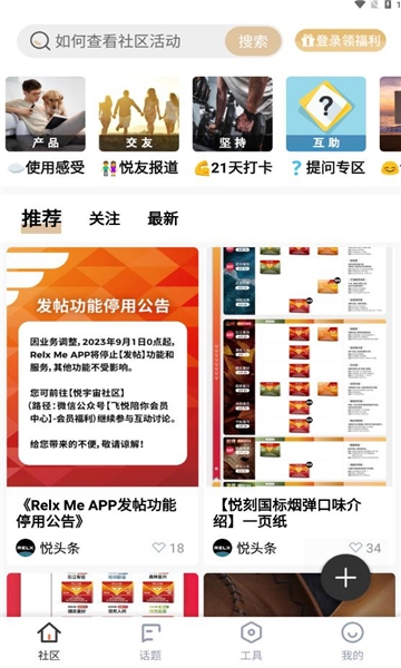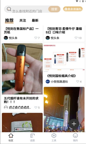 悅刻是一款由深圳霧芯科技有限公司所研發(fā)的煙民社交軟件,為用戶帶來輕松的社交平臺(tái),讓用戶購(gòu)買到真實(shí)的產(chǎn)品,保證物品的質(zhì)量,幫助你找到志同道合的好友,一起進(jìn)行關(guān)于電子煙的社交。用戶們?cè)谲浖锌梢钥吹缴碳姨峁┑淖钚庐a(chǎn)品,還可以同社區(qū)類的煙民們交流,包括網(wǎng)絡(luò)上的通關(guān)產(chǎn)品使用者交流,同時(shí)軟件每天打卡還可以領(lǐng)取獎(jiǎng)品,非常有特點(diǎn),煙民可以在這里相互交流探討。