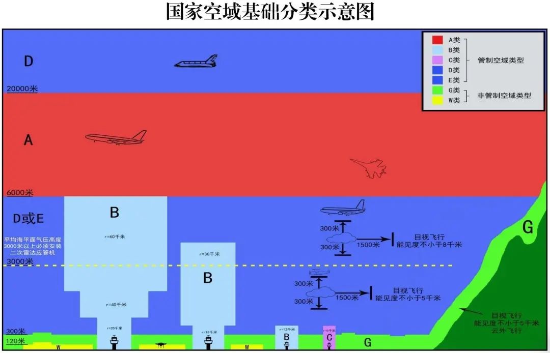 W類空域通常為G類空域內(nèi)真高120米以下部分空域。