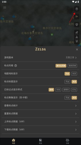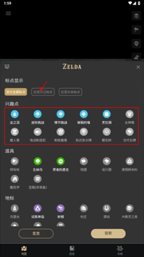 然后在彈出的界面選擇你需要尋找的各個道具點和地標、如龍之淚、清潔挑戰、試煉神廟等等