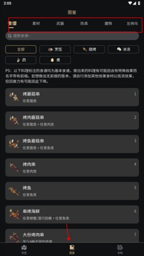 如果你不清楚塞爾達各種資源的話,可以點擊圖鑒,進行搜索查詢,非常方便