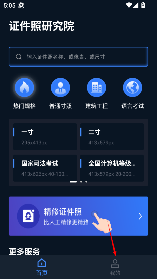 首先打開我們手機中的證件照研究院,點擊首頁的【直接拍證件照】功能。