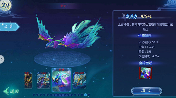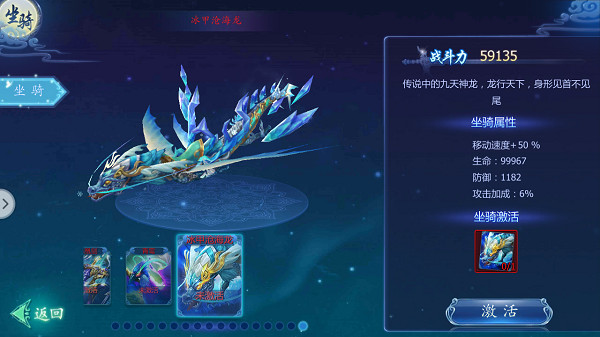傳說中飛越九霄的神龍,身影詭譎難覓。屬性增益:移動速率提升50%、生命值增加99967點、防御力提高1182點、攻擊額外加成6%。獲取方式:參與【飛升尋寶】活動。