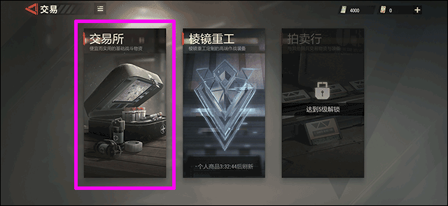 進入交易界面后,選擇“交易所”選項(該選項需達到5級才能解鎖)