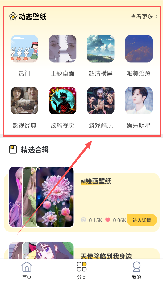 發(fā)現了精美的壁紙合集,大家可以前往“動態(tài)壁紙”區(qū)域中的“精選合輯”進行查看,像“愛寵大機密”這樣的合集就很不錯,點擊“進入詳情”后就能瀏覽并獲取整套資源了。