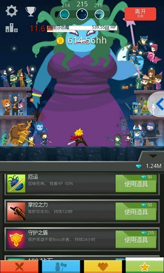 這個游戲的數值增長速度相當快,相應地升級所需的次數也非常多——游戲里大概有三十多個英雄,每個英雄要升到6000級,之后還能再進行三次6000級的強化升級,另外還有關鍵的點擊BOSS環節。