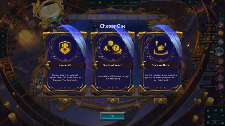 在五個單位的上方,您能看到自己擁有的金幣數(shù)量。除了用金幣在商店購買單位外,還可以用它來刷新——花費2g“重新滾動”以切換到另一組五個冠軍,或者花費4g購買4點經(jīng)驗值。另外,您也能出售棋盤或工作臺上的單位。
