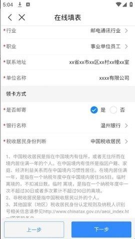 按照頁面上的提示,填寫好個人基本信息以及領卡方式,之后點擊“下一步”按鈕。