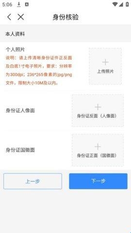 請上傳個人照片以及身份證的正面和反面照片,之后點擊“下一步”按鈕。