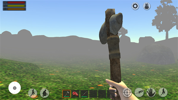 通過安全渠道完成安裝后,首次進(jìn)入游戲時(shí),背包里會(huì)配備石斧、肉類、長(zhǎng)矛等基礎(chǔ)物資。