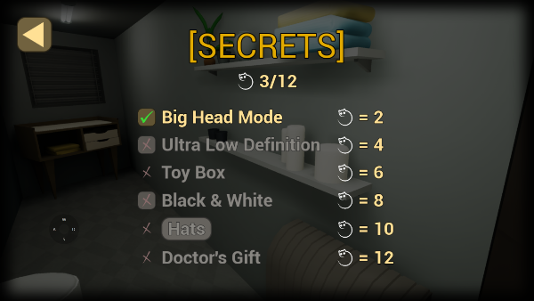 在這里你可以查看隱藏內容,當前游戲任務目標是尋找低畫質風格的黑白玩具盒、帽子以及醫生送的禮物,接下來就由你自行探索完成。