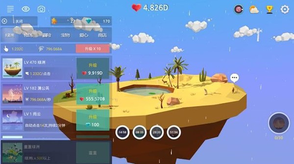 玩家能夠通過持續提高綠洲的等級,使其從一塊空曠的土地逐步發展成充滿生機與活力的理想家園。