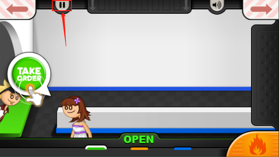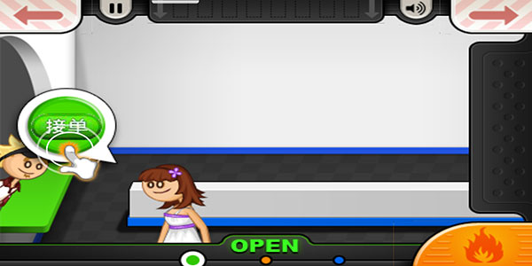 進入游戲后首先會進入點餐臺界面,點擊左側(cè)的綠色按鈕就能開始接收顧客的訂單了。