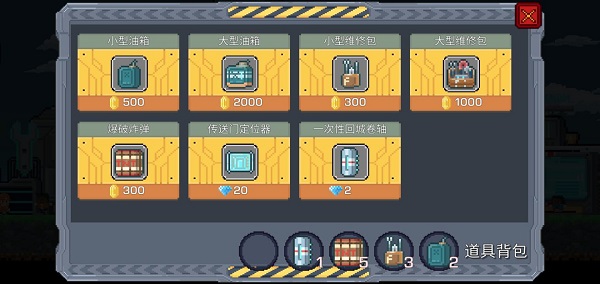 道具系統涵蓋多種物品:大小型修復包用于恢復生命值,實用度中等,建議攜帶小型作為備用;大小型油桶可補充油量,其中小型油桶能恢復約500單位油量,可多準備幾個;炸藥是推薦使用的道具,適合垂直方向的深挖作業,能夠摧毀周圍八個方塊,在應對巖漿、落石和蟲子時效果顯著;傳送類道具里,小傳送道具花費2鉆,使用后可一次性回城但無法返回原位置;大傳送道具花費20鉆,能建立永久傳送門,支持往返通行,最多可設置兩個,若花費100鉆則可額外增加一個。道具欄的上限為五種不同類型的道具,每種道具最多可攜帶五個,但炸藥的攜帶上限為20個,傳送道具則不受攜帶數量的限制。