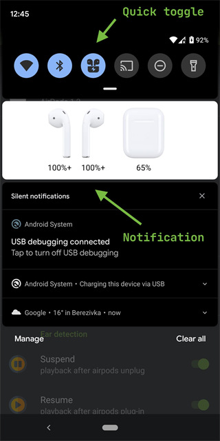 andropods軟件是專門針對安卓用戶開發(fā)的AirPods智能管理工具,能完美解決安卓手機與蘋果耳機的兼容性問題,讓安卓用戶也能像iOS系統(tǒng)那樣,體驗AirPods的流暢交互。此外,軟件還優(yōu)化了耳機續(xù)航,其專屬低功耗設(shè)計可支持耳機長時間使用,且不會對手機續(xù)航造成影響,十分便捷。
