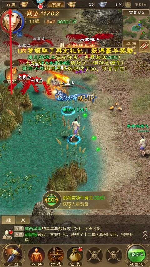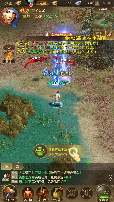 1、玩家進入游戲后可點擊任務欄開啟自動掛機模式,并自動接取新任務。