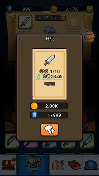 進入游戲后,點擊“英雄”選項就能查看當前角色所穿戴的裝備詳情,不同品質的裝備在威力方面存在差異。