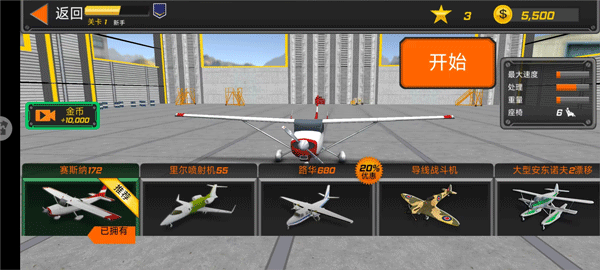 3、挑選心儀的飛機型號,準備起飛;