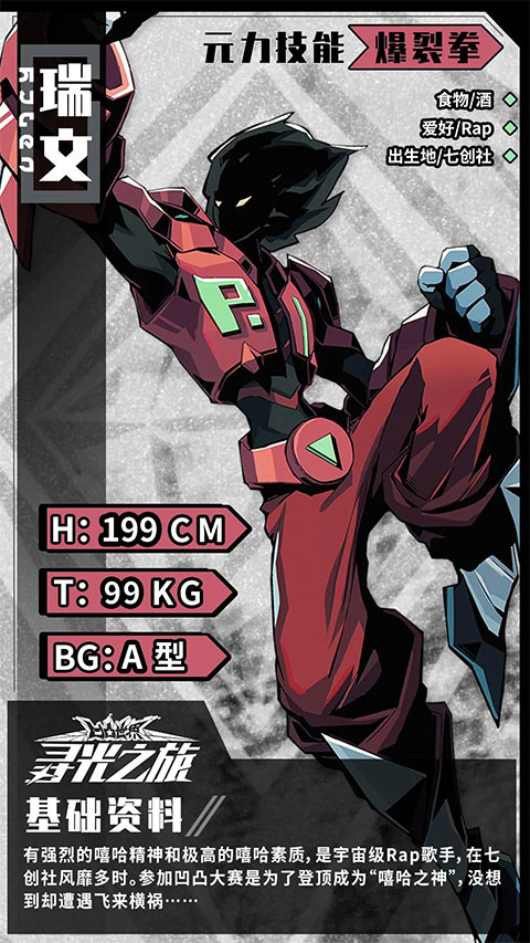 瑞文是一位具備濃厚嘻哈精神與精湛說唱技藝的頂尖說唱歌手,曾在七創(chuàng)社收獲超高人氣。他參與凹凸大賽的目標(biāo)是成為“嘻哈之神”,但遺憾的是中途遭遇了意外變故。