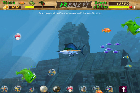 綠色小魚:含有毒素,吞食后會導致小魚方向顛倒(快速點擊左鍵排毒)。
