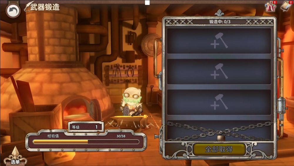 店主能夠利用素材與金幣,打造出形形色色的武器。打造武器需要占用一個鍛造欄位,點擊該欄位會進入鍛造選擇界面,確認打造后,鍛造欄會顯示剩余所需時間,待時間結束即可獲取武器。