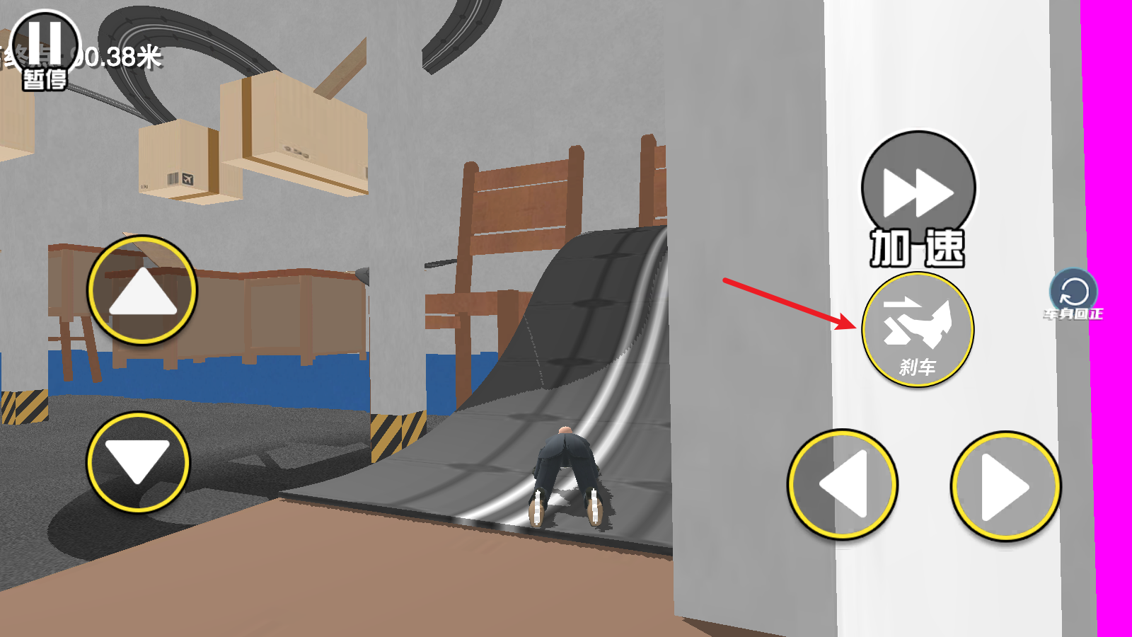 當速度過快時,我們可以通過點擊剎車來降低速度,從而避免發生撞擊或沖過頭的情況。