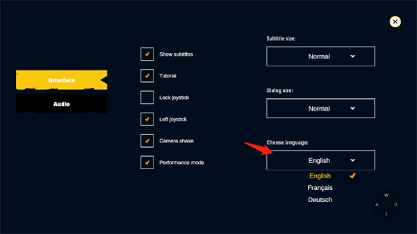 進入設(shè)置界面后,找到“choose language”選項,挑選你熟悉的語言,接著回到主界面就能開始游戲了。