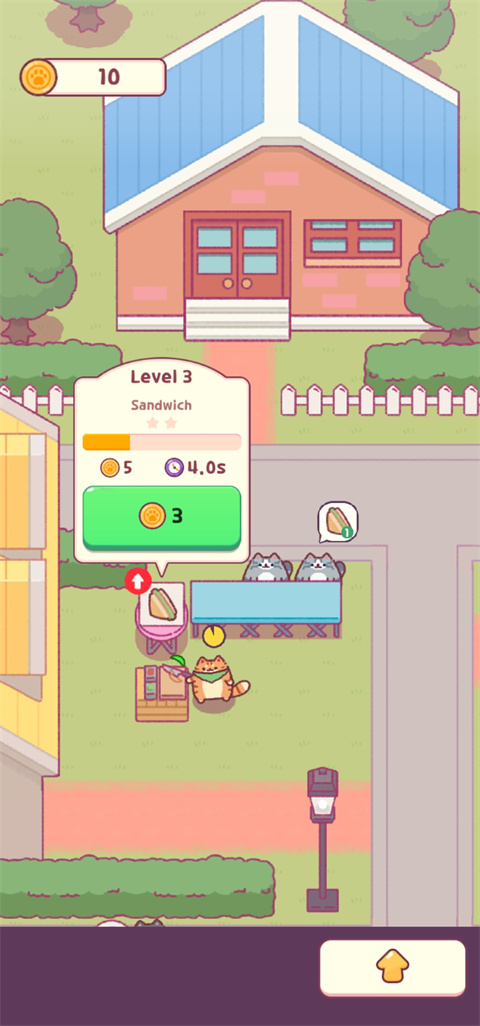 點擊屏幕下方的黃色箭頭,就能招募一只貓咪助手來幫忙制作三明治。