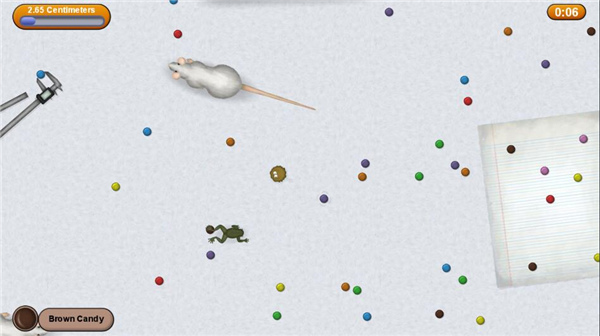 玩家需要留意的是,游戲進行時,要是被體積比自己大的物體撞到,自身的體積就會變小。因此在尋找食物的過程中,務必注意躲開那些體型龐大的物體。