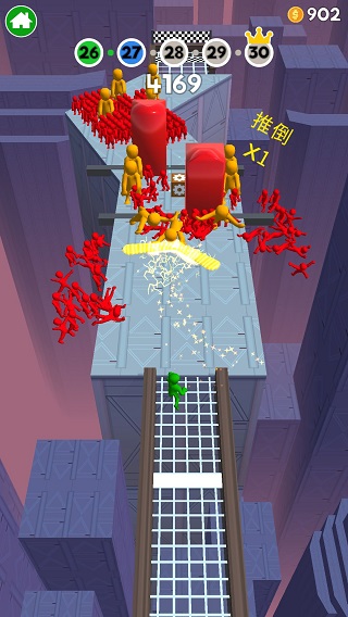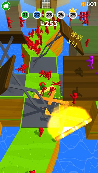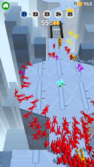 以把前方擁擠的人群推下平臺為目標,合理利用棍子的伸縮功能,巧妙規劃自己的移動路線,防止被對手推下平臺。