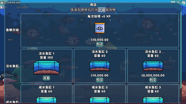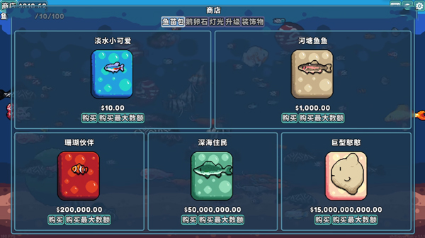 等魚兒長大就能賣掉換金幣,用這些金幣升級魚缸,就能養(yǎng)更多小魚了。