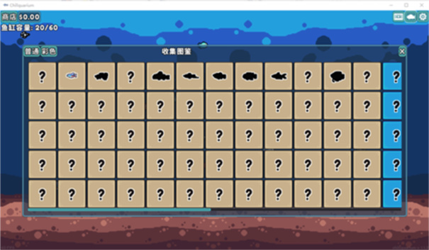 輕松水族館是一款休閑模擬養(yǎng)魚游戲,英文名是Chillquarium。在游戲里,你將扮演水族館館長,通過購買魚苗培育小魚,待它們長大后出售換取資金,用這些錢購置更大的魚缸,養(yǎng)殖更多種類的魚。游戲中的魚類十分豐富,你可以根據(jù)喜好自由選擇養(yǎng)殖,當(dāng)收集到100種不同魚類時,你的水族館會變得更加絢麗多彩。