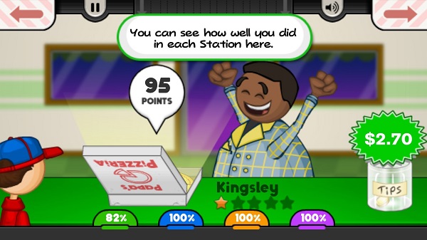 需要注意的是,當(dāng)顧客在玩家點(diǎn)擊“接受訂單”按鈕前的排隊(duì)等待時(shí)長(zhǎng)過(guò)久,或者玩家準(zhǔn)備訂單的耗時(shí)過(guò)長(zhǎng)時(shí),玩家的積分就會(huì)被扣除。顧客會(huì)依據(jù)玩家所制作披薩的情況進(jìn)行評(píng)分,并且會(huì)在小費(fèi)罐里留下小費(fèi),同時(shí)玩家還能獲得用于兌換迷你餐券的積分。