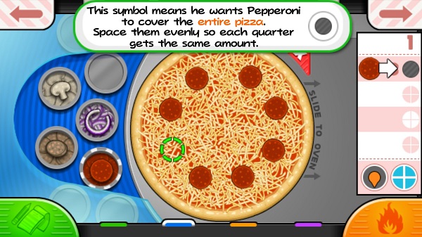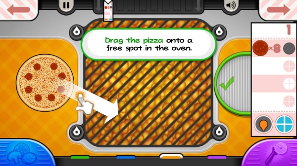 玩家要按照顧客指定的時(shí)間來(lái)烘烤披薩。顧客能挑選把披薩烤到計(jì)時(shí)器刻度盤(pán)上的不同位置。等披薩烤好后,玩家點(diǎn)擊它就能把它移到下一個(gè)環(huán)節(jié)。