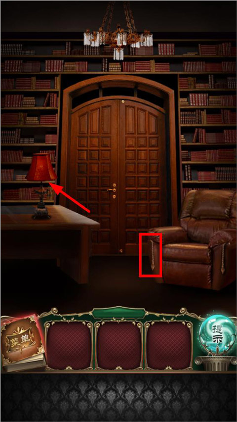 第三關(guān)我們從沙發(fā)上找到一根繩子,接著把繩子放到左邊的臺(tái)燈那里,等場(chǎng)景亮起來(lái),就能看到左下角有個(gè)紅色按鈕,按下它就會(huì)進(jìn)入第四關(guān)。
