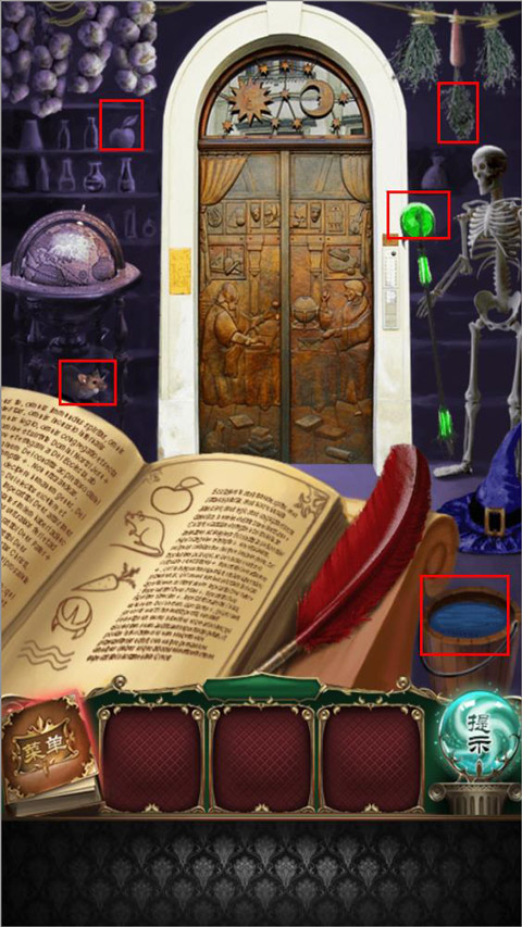 第六關(guān)是尋物玩法,首先在左側(cè)架子上找到一顆蘋果,接著在下方拿到一只老鼠,然后去右邊獲取胡蘿卜和骷髏上的寶石,最后點(diǎn)擊水,門就會(huì)打開,這樣就能進(jìn)入第七關(guān)了。