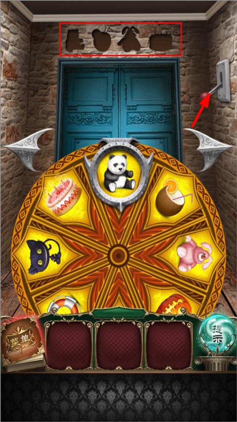 第九關(guān)時(shí),我們要在中間的轉(zhuǎn)盤上挑選與門上一致的圖案。等選對(duì)圖案后,就拉動(dòng)右側(cè)的拉桿。當(dāng)四個(gè)圖案都選好時(shí),門便會(huì)開啟,隨即進(jìn)入第十關(guān)。