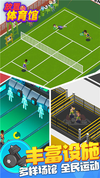 有著多種不同的趣味經營玩法,讓你在這個體育館里不斷的通過獲取全新資源去建設,然后升級設備,雇傭教練,模擬真實的場景,發展多種業務,讓你的體育館門庭若市!