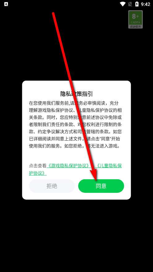 仔細閱讀游戲隱私政策指引,點選【同意】進入。