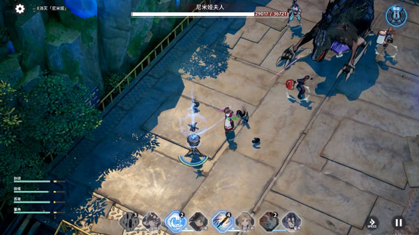 在一場boss戰里,boss會輪換使用多種技能攻擊玩家,包括扇形技能、召喚小怪的技能,偶爾還會暫時退出戰斗,到場地邊緣釋放范圍技能攻擊玩家小隊;而依據角色定位的差異,有的角色要在boss身前扛傷害、拉仇恨,有的是在側面輸出的近戰職業,還有在后方的輔助和遠程輸出角色,玩家總共能攜帶四名角色參與戰斗。