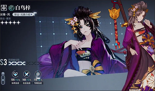 首先要提到的是不少玩家都比較熟悉的白鳥,作為后期推出的原創角色,制作團隊在其角色設定和技能設計上投入了不少精力,堪稱風系輸出與爆發能力的典型代表。作為尖峰職業里極具特色的角色,白鳥的單點爆發傷害十分突出,同時具備單體攻擊和群體攻擊能力,再加上多重技能帶來的傷害加成,在輸出表現上可以說是無可挑剔。