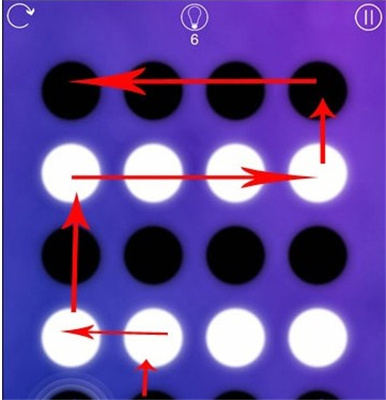 游戲的玩法十分簡單,只需按照上方的提示翻轉圓圈,使其變換成另一種顏色,最終讓所有圓圈都統一為同一種顏色即可。