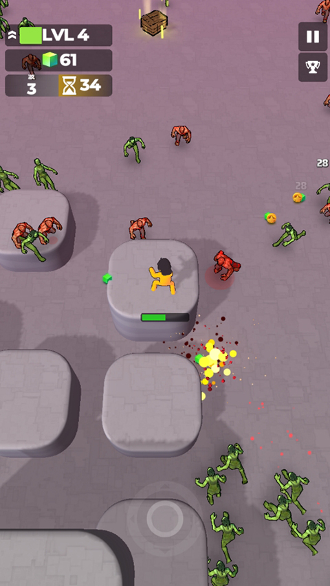 跳一跳大冒險是一款極具爽快感的經典Roguelike割草射擊手游,支持中文語言切換,助力玩家輕松理解游戲內容。在游戲里,玩家將化身勇敢的小黃人,戴著酷炫墨鏡,手持威力強勁的雙槍,在蜂擁而至的尸潮中靈活穿梭,把僵尸一個個消滅。游戲融入的Roguelike元素,讓玩家每次冒險遇到的敵人和獲得的武器都不一樣,這種高隨機性的設定,對玩家的Build搭配和長期規劃能力有一定考驗。不過只要玩家策略得當,再加上強力武器的助力,任何僵尸都不在話下,玩家能愜意地在尸潮里“割草”,盡情享受射擊的樂趣。喜愛割草類游戲的玩家可別錯過,快來開啟跳一跳大冒險吧!