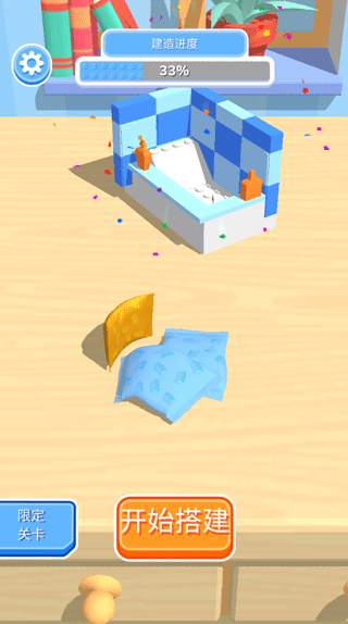 積木派對憑借精致的3D游戲畫面,為玩家打造了一場極具代入感的視覺盛宴,讓大家能沉浸在把積木零件組裝成精美模型的樂趣里,找回童年的美好記憶。此外,游戲采用豎屏設計來呈現內容,只需點擊和拖動就能完成拼裝,特別適合休閑玩家在空閑時打開體驗,既能打發時間,又能充分放松身心。