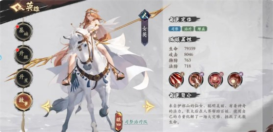 游戲內英雄定位的重要性高于機制,通常分為奶、盾、輸出三類,其中輸出又細分為法傷、物傷和切后排。游戲沒有羈絆機制,所以養成順序上,前期若能通過首沖獲取,奶位優先選擇【人】女英——畢竟前期以PVE推圖為主,女英在PVE中的治療能力和推圖效率都很出色。