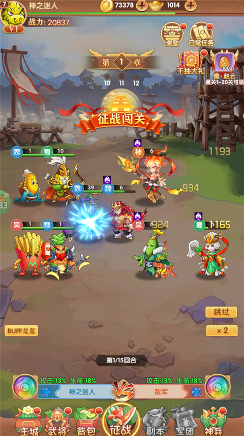 玩家能夠參與眾多三國歷史戰(zhàn)役的挑戰(zhàn),借助三國角色之間的合理搭配,更有效地戰(zhàn)勝對手。